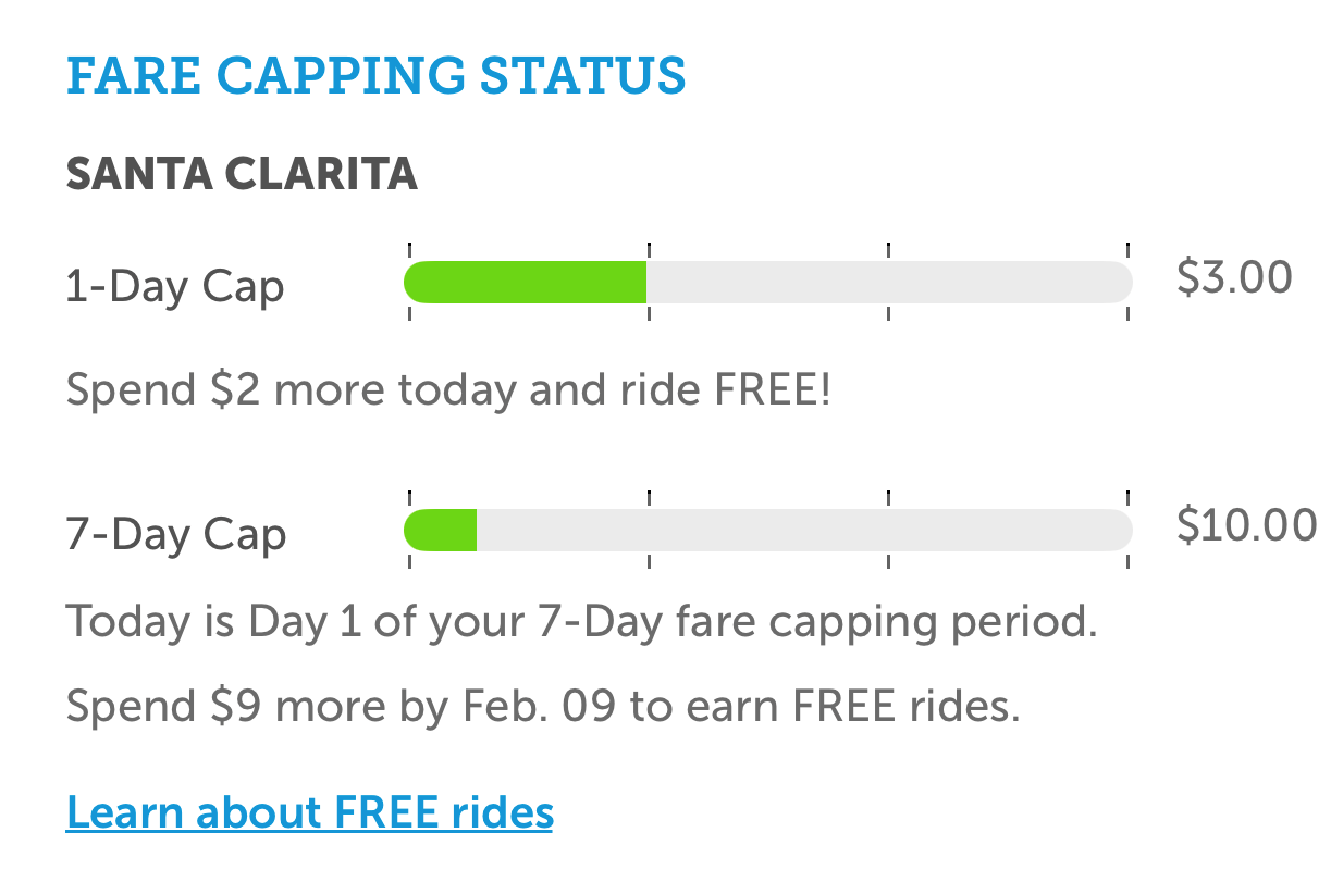 - Progress towards fare capping occurs on paid rides only. For example, if you earned your daily fare cap (3 rides in 1 day), all your additional free rides that day will not be counted towards your weekly fare cap.